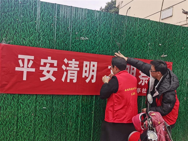 活動中,志愿者與社區(qū)工作人員向居民發(fā)放倡議書,呼吁社區(qū)居民進(jìn)一步樹立“安全文明、綠色環(huán)!鼻迕骷漓胄嘛L(fēng)尚,建議用鮮花祭祀、絲帶寄哀思、網(wǎng)絡(luò)祭掃等文明簡約、綠色環(huán)保的祭掃方式來寄托哀思,營造文明有序的祭祀環(huán)境。