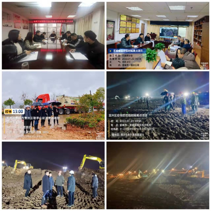 1月21日,根據(jù)宣州區(qū)疫情防控指揮部緊急部署,由區(qū)國資集團作為建設(shè)單位,鰲峰建設(shè)集團作為施工單位,在高新區(qū)綜合醫(yī)院東側(cè)地塊實施宣州區(qū)疫情防控臨時隔離點建設(shè)項目。接到任務(wù)后,區(qū)國資集團第一時間成立工作組,迅速組織建設(shè)隊伍,24小時不間斷施工,力爭以最快的速度完成臨時隔離點建設(shè)。