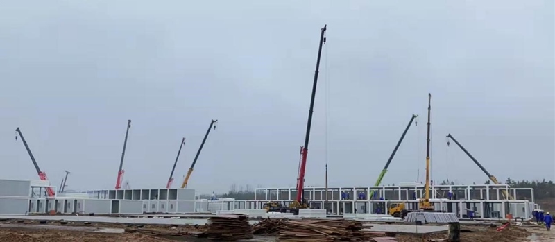 截至2月11日,隔離點(diǎn)項(xiàng)目準(zhǔn)備區(qū)折疊房安裝完成,折疊房室內(nèi)家具、空調(diào)、熱水器、淋浴房、水電正在有序安裝中;隔離區(qū)板房室外電力電纜井砌筑、緩沖區(qū)板房已安裝完成;污水處理設(shè)備正在安裝中,室外走道支模和路燈線路在準(zhǔn)備中。