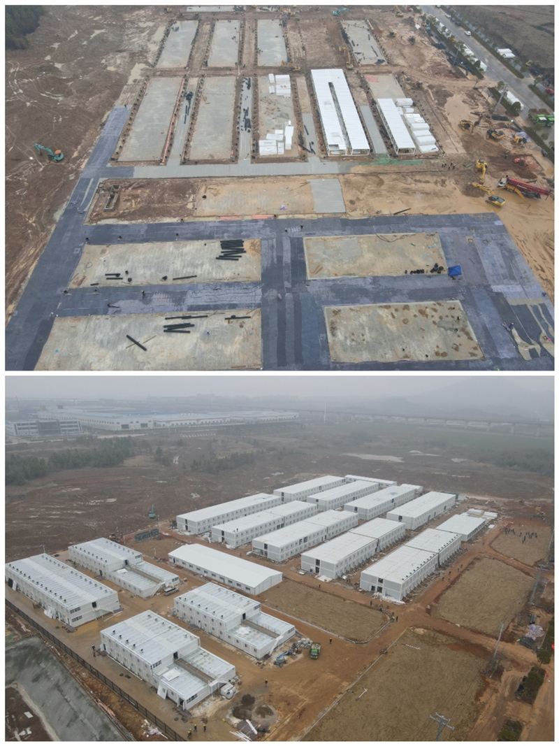 自1月21日宣州區(qū)疫情防控指揮部緊急部署由區(qū)國資集團(tuán)承建宣州區(qū)疫情防控臨時(shí)隔離點(diǎn)項(xiàng)目始,集團(tuán)即刻投入到緊張有序的搶建工作中。冬季施工難度相當(dāng)大,項(xiàng)目更是遭遇持續(xù)降雨、二次大雪和連續(xù)降溫,氣候條件十分不利。然而國資集團(tuán)不畏困難,不失時(shí)機(jī),抓住一切機(jī)會搶工程,不論白天、黑夜、刮風(fēng)還是下雨,始終緊抓建設(shè)不放松,克服持續(xù)陰雨天氣,大干6個(gè)晝夜,突擊144小時(shí)連續(xù)作業(yè),完成25000平方米混凝土澆筑。更是在春節(jié)期間不停工,不斷檔,頂著暴風(fēng)雪、克服春運(yùn)帶來的采購、人工、交通等一切不利因素,在元宵節(jié)前完成準(zhǔn)備區(qū)188套、隔離區(qū)744套打包房吊裝工作。